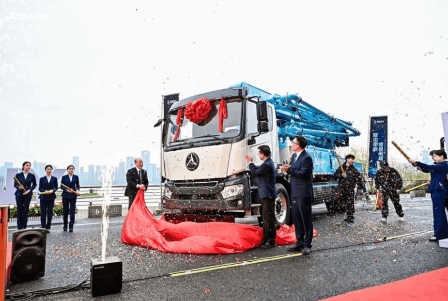Кинескиот гигант „Сани Хеви Индустри“ го лансираше она што го нарекува прв интелигентен хибриден камион во светот со пумпа за бетон.