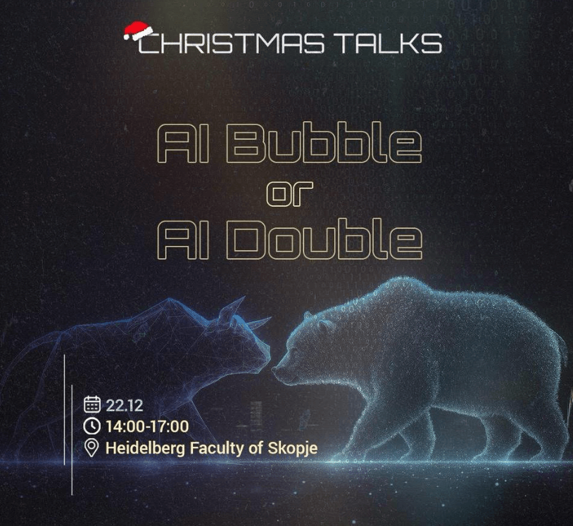 Суштинска и длабинска дебата околу прашањето дали актуелниот раст на инвестициите во AI претставува нов инвестициски балон или, пак, долгорочна можност што ќе ја редефинира глобалната економија ќе биде отворена на панелот „Christmas Talks, на Институтот Хајделберг во Скопје. Темата на годинешниот панел е AI Bubble or AI Double – Navigating Investment Opportunities and Risks in Volatile Stock Markets“ (Навигација низ инвестициските можности и ризици во услови на нестабилни капитални пазари) а ќе се одржи на 22 декември 2025 година, од 14:00 до 17:00 часот, во просториите на факултетот Хајделберг во Скопје.
